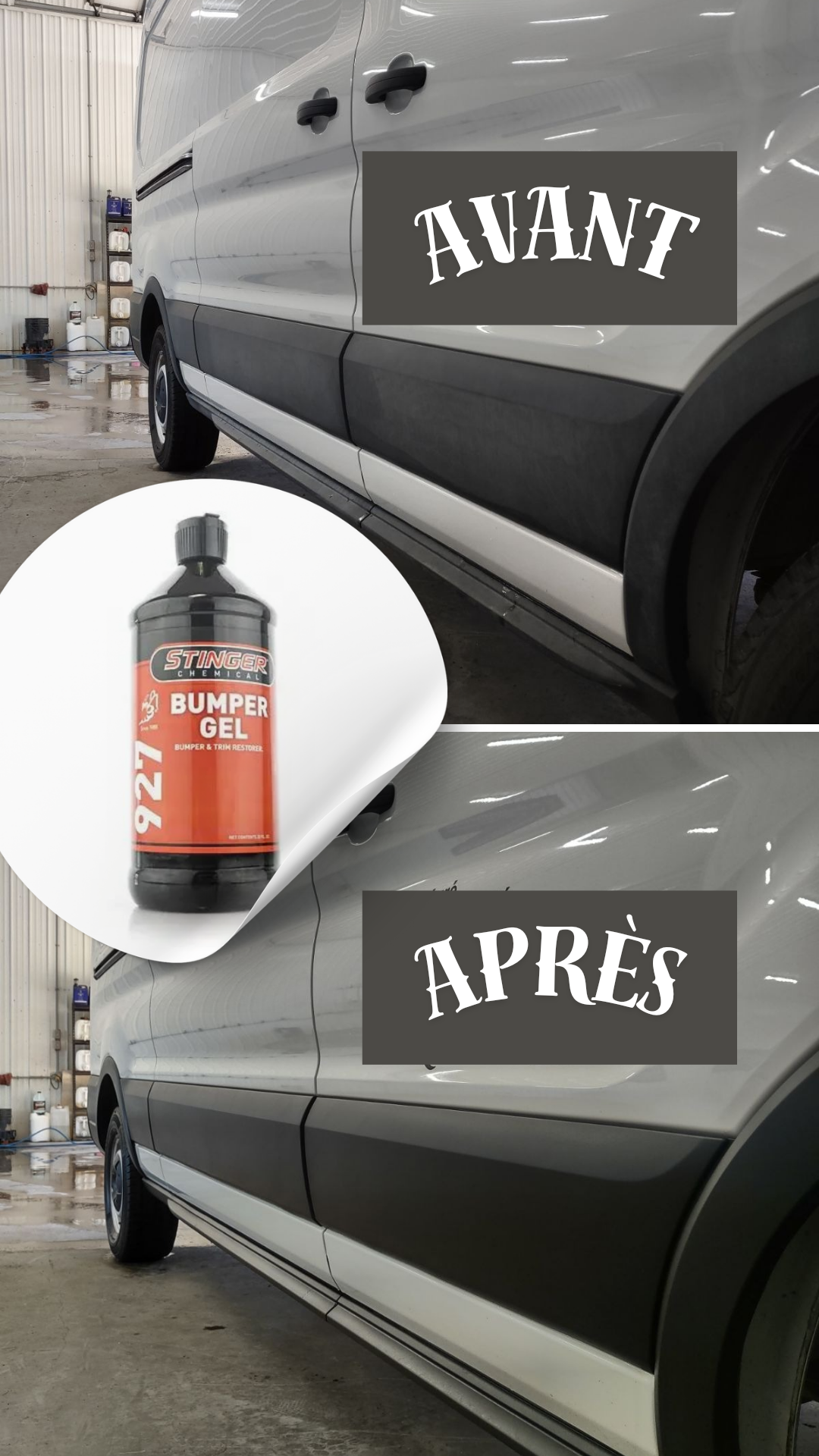 Conçu pour redonner un nouvel éclat aux pare-chocs et garnitures délavés. Contient des protecteurs contre les intempéries UV. Ne laisse aucune trace lorsqu'il est mouillé ou qu'il pleut.